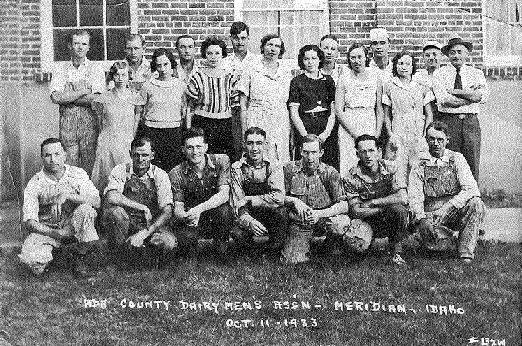 The 1933 photo below shows the important role the dairy industry played in Meridian. In a real economic sense, the creamery was a local counterbalance to the Great Depression, whose advent and course coincided with the emergence of the dairymen’s association. Its life-giving tentacles reached from the core of the downtown area to hundreds of area farms of varying sizes and types, all of which had a few milk cows.