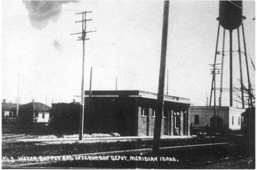 At the turn of the 20th century the Electric Railway and Interurban Depots became a necessity for residents in Ada County. The photo below shows the Interurban Depot which opened in 1913. It was located at where day Meridian Rd. and Idaho St. The Electric Railway allowed farming communities to quickly and easily transport their goods to and from local markets. Meridian relied on its dairy and orchard industries. The railway allowed farmers to increase the export of their products without increasing the cost of their business. Additionally these railways connected the urban cities (think Boise) to the more rural communities that surrounded them (think Meridian, Nampa)