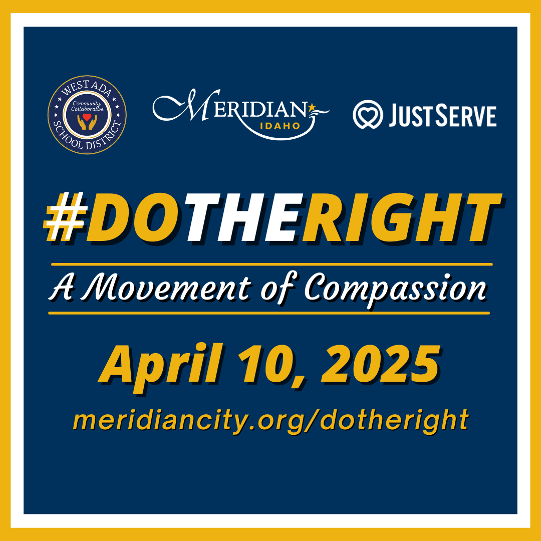 To celebrate our campaign of kindness, the West Ada Community Collaborative, JustServe, and the City of Meridian have teamed up to host a Do the Right Fair Community Event on Thursday, April 10, 2025, from 5:30-7:30 PM, at Meridian Middle School (1507 8th St NW, Meridian, ID 83642 »).