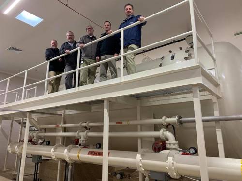 Once the groundwater is drawn up through the wells, it is disinfected and, in some cases filtered first. Water that requires filtration is pumped out of the ground and into a pressurized filter vessel (see photo at right). This water is then sent through a special filter media that removes the iron and manganese molecules that contribute to brown water. This filtered water is then disinfected and sent into the water distribution system and to your home.